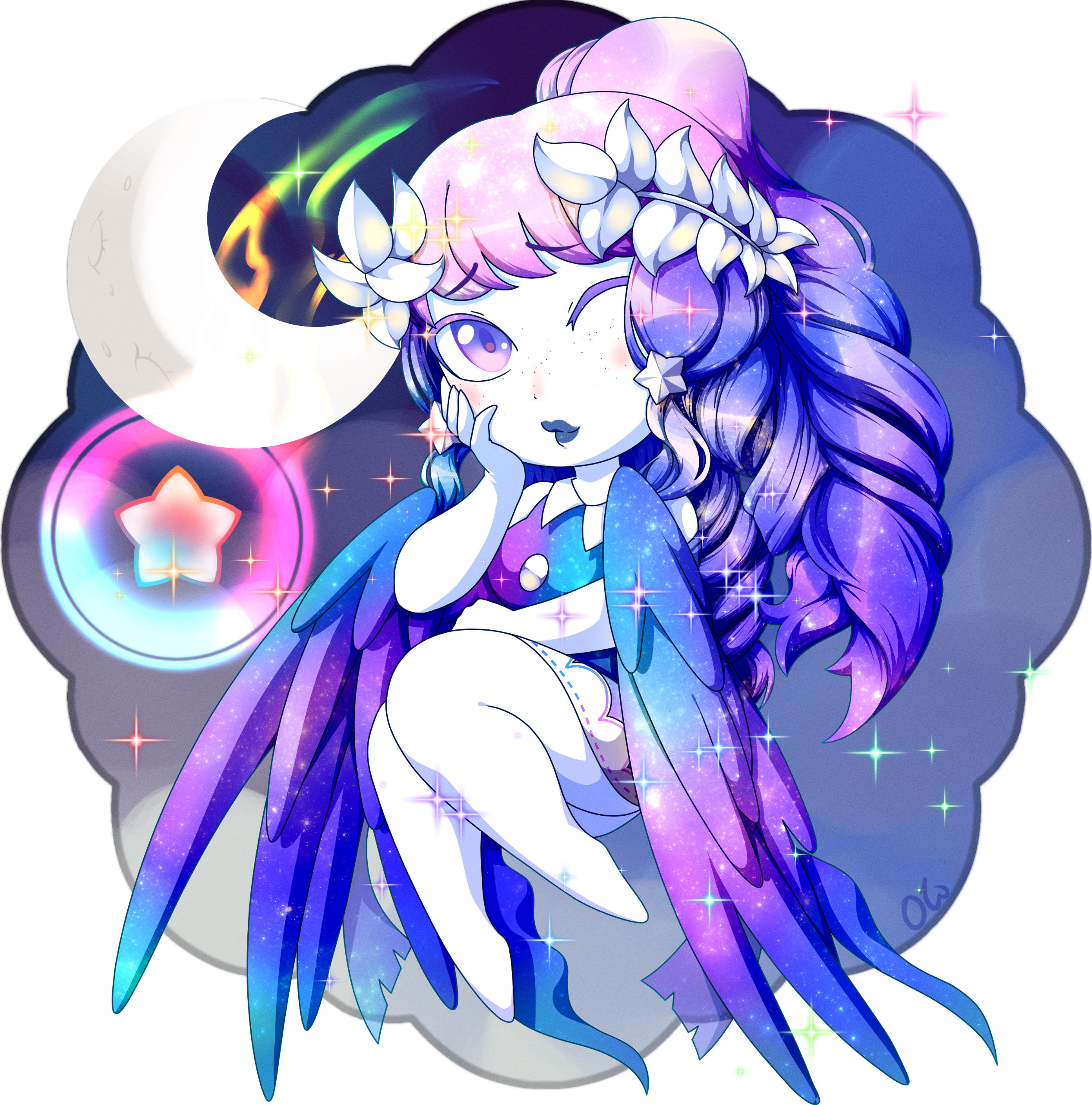 Simple background: [Currently unavailable] - The background can be a simple gradient with sparkles or simple shapes set in a way that matches the character's aesthetics and personality.